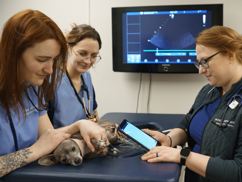 “Annual wellness exams for both dogs and cats can help catch early signs of heart disease sooner so that it can be diagnosed and treated early,” said Dr. Mark Harmon, DVM, DACVIM, BBVSH cardiologist. “When co-managed with a board-certified veterinary cardiologist, these animals can live 75% longer. Our team treats cardiovascular issues including congenital diseases in young puppies and kittens, management of heart failure, and even implantation of pacemakers in dogs so that many of our patients go on to live long and active lives.”